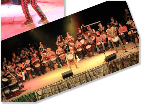 Traditionelle afrikanische Musik wird hauptsächlich durch die Trommeln bestimmt.Die Trommel, früher das einzige schnelle Kommunikationsmittel über große Distanzen hinweg,ist als Instrument in ihrer Klangfarbe unendlich variantenreich - man muss sie nur richtig schlagenkönnen...Traditionell afrikanisch ist auch Kleidung aus Naturmaterialien wie Leder, Fell, Gräser (Bast), Blättern und vielem mehr. Deshalb tragen die Musiker für diesen Part auch die Munganza, ein traditionelles Kostüm.